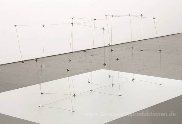 Wir bieten Ihnen eine handgefertigte Reproduktion auf Leinwand des berühmten Kunstwerks 'Reticulárea cuadrada horizontale 71/10' von Gego, aus dem Reproduktionsmuseum.