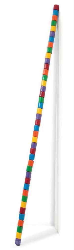 Wir bieten Ihnen eine handgefertigte Reproduktion auf Leinwand des berühmten Kunstwerks 'Round Wooden Bar in Rot, Blau, Orange, Grün, Gelb und Violett' von Andre Cadere, aus dem Reproduktionsmuseum.