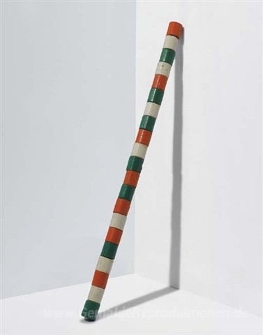 Wir bieten Ihnen eine handgefertigte Reproduktion auf Leinwand des berühmten Kunstwerks 'Round Wooden Bar' von Andre Cadere, aus dem Reproduktionsmuseum.