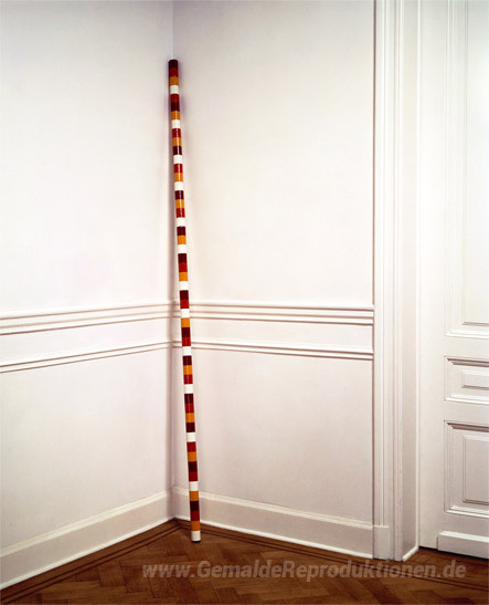 Wir bieten Ihnen eine handgefertigte Reproduktion auf Leinwand des berühmten Kunstwerks 'Round Wooden Bar' von Andre Cadere, aus dem Reproduktionsmuseum.