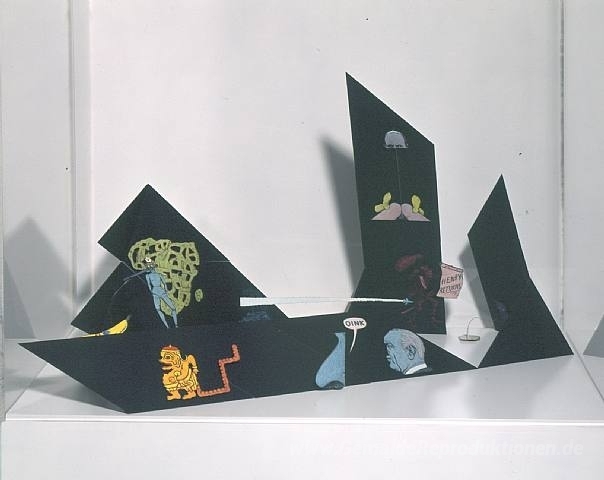 Wir bieten Ihnen eine handgefertigte Reproduktion auf Leinwand des berühmten Kunstwerks 'Schwarzes Haus' von Oyvind Fahlstrom, aus dem Reproduktionsmuseum.