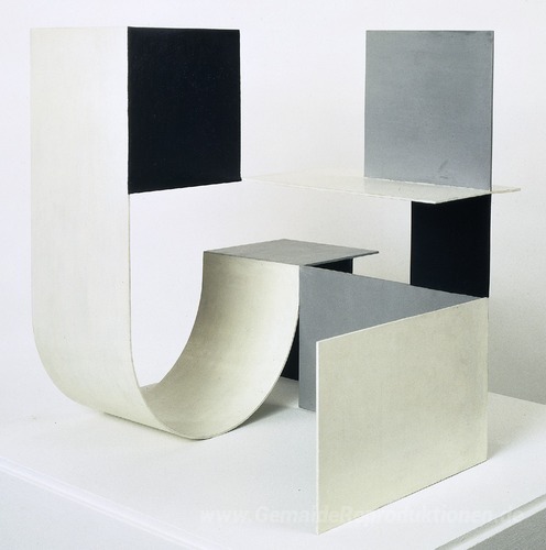 Wir bieten Ihnen eine handgefertigte Reproduktion auf Leinwand des berühmten Kunstwerks 'Skulptur Spatiale' von Katarzyna Kobro, aus dem Reproduktionsmuseum.