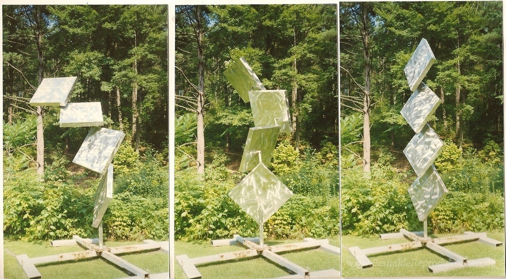 Wir bieten Ihnen eine handgefertigte Reproduktion auf Leinwand des berühmten Kunstwerks 'Spalte Four Squares Excentric Gyratory III, Var. II' von George Rickey, aus dem Reproduktionsmuseum.