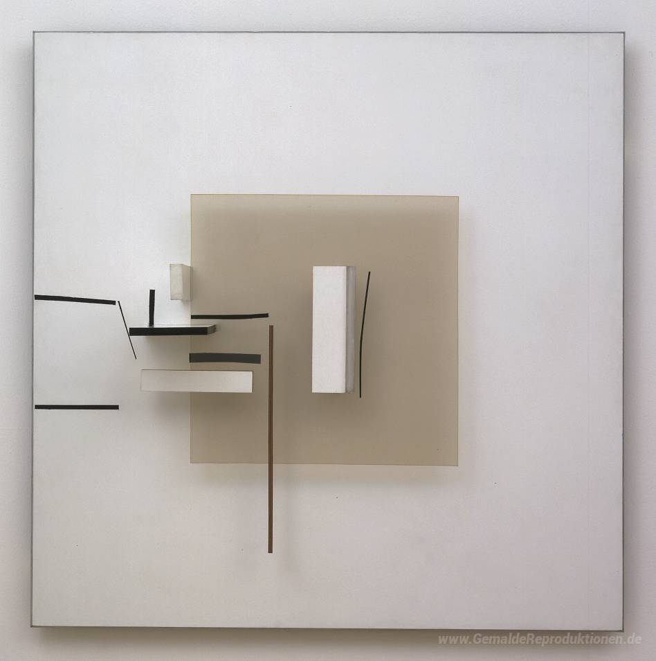 Wir bieten Ihnen eine handgefertigte Reproduktion auf Leinwand des berühmten Kunstwerks 'Synthetische Construction (Weiß und Schwarz)' von Victor Pasmore, aus dem Reproduktionsmuseum.