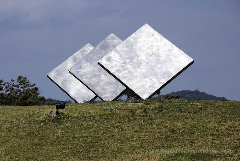 Wir bieten Ihnen eine handgefertigte Reproduktion auf Leinwand des berühmten Kunstwerks 'Three Squares Vertikal Diagonal' von George Rickey, aus dem Reproduktionsmuseum.