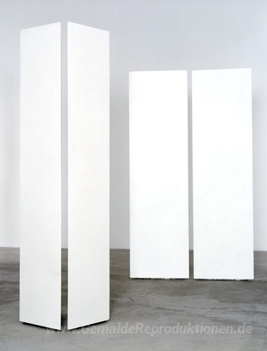 Wir bieten Ihnen eine handgefertigte Reproduktion auf Leinwand des berühmten Kunstwerks 'Untitled (Dreieckige Säulen)' von Mary Corse, aus dem Reproduktionsmuseum.