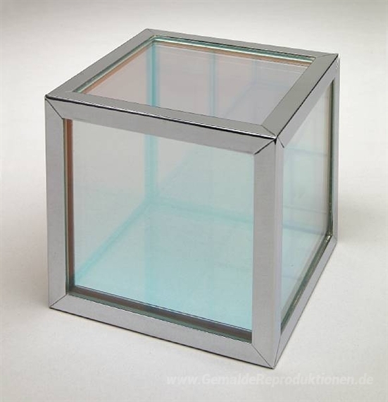 Wir bieten Ihnen eine handgefertigte Reproduktion auf Leinwand des berühmten Kunstwerks 'Untitled (Iridescent Cube)' von Larry Bell, aus dem Reproduktionsmuseum.