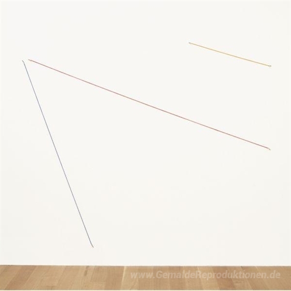 Wir bieten Ihnen eine handgefertigte Reproduktion auf Leinwand des berühmten Kunstwerks 'Untitled (Wandaufbau)' von Fred Sandback, aus dem Reproduktionsmuseum.