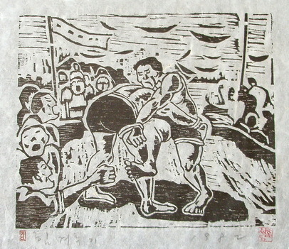 Wir bieten Ihnen eine handgefertigte Reproduktion auf Leinwand des berühmten Kunstwerks 'Die Wrestling Match' von Hong Song-dam, aus dem Reproduktionsmuseum.