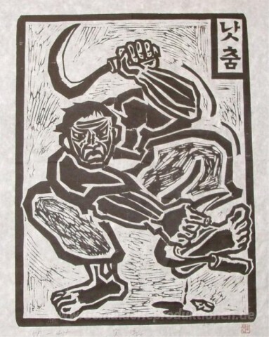Wir bieten Ihnen eine handgefertigte Reproduktion auf Leinwand des berühmten Kunstwerks 'Korean Sicheltanz' von Hong Song-dam, aus dem Reproduktionsmuseum.