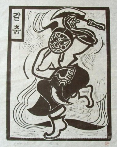Wir bieten Ihnen eine handgefertigte Reproduktion auf Leinwand des berühmten Kunstwerks 'Schwerttanz' von Hong Song-dam, aus dem Reproduktionsmuseum.
