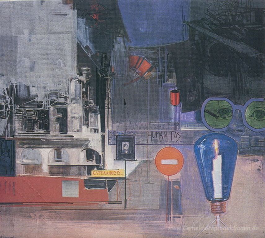Die künstlerische Raffinesse von Abriss spiegelt sich in der Verwendung lebendiger Farben und dynamischer Pinselstriche wider, die eine beeindruckende Atmosphäre schaffen. Jedes Detail wurde mit Geduld und Hingabe gestaltet, um ein harmonisches Zusammenspiel von Licht und Schatten zu erzeugen. Platzieren Sie dieses bemerkenswerte Gemälde in Ihrem Raum, und erleben Sie, wie es die Stimmung verwandelt und eine neue Dimension der Ästhetik hinzufügt. Lassen Sie sich von der Kraft der Kunst inspirieren und bereichern Sie Ihr Zuhause mit einem Stück von Alekos Kontopoulos.