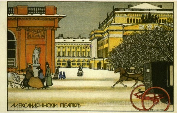 Wir bieten Ihnen eine handgefertigte Reproduktion auf Leinwand des berühmten Kunstwerks 'Alexandrinsky Theater' von Mstislav Dobuzhinsky, aus dem Reproduktionsmuseum.