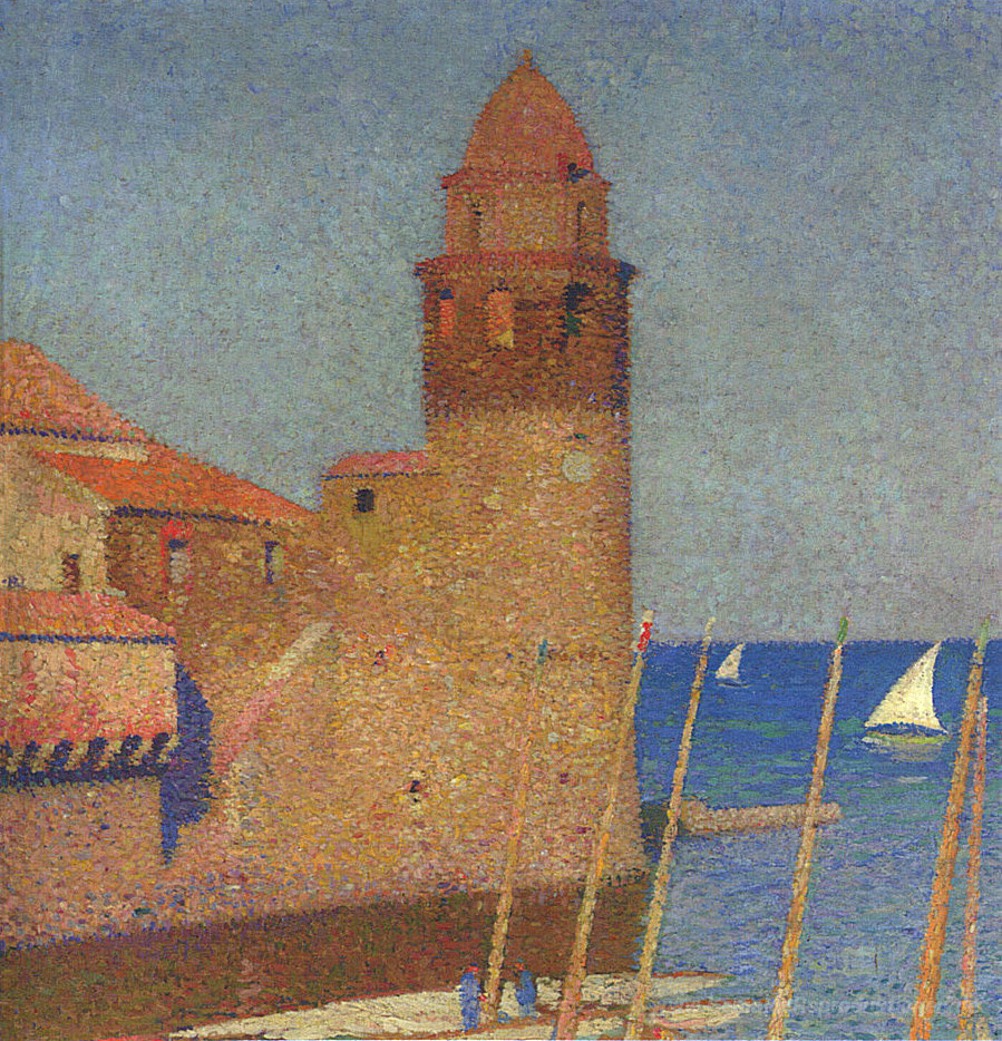Wir bieten Ihnen eine handgefertigte Reproduktion auf Leinwand des berühmten Kunstwerks 'Ansicht von Collioure' von Henri Martin, aus dem Reproduktionsmuseum.