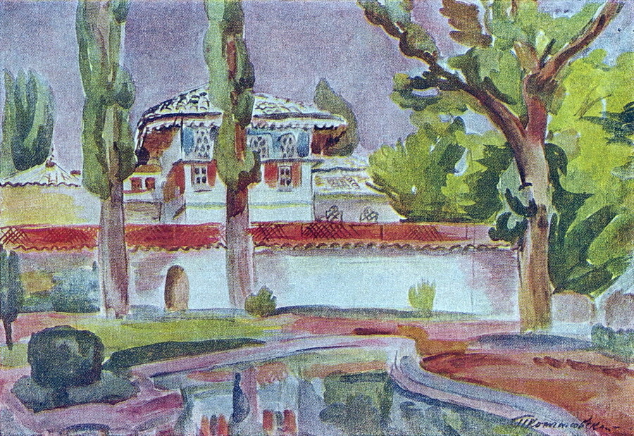 Wir bieten Ihnen eine handgefertigte Reproduktion auf Leinwand des berühmten Kunstwerks 'Bachtschissarai. Khan-Palast.' von Pyotr Konchalovsky, aus dem Reproduktionsmuseum.