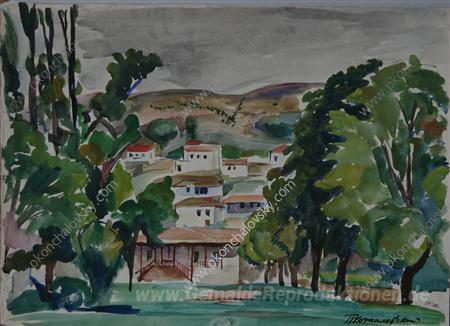 Wir bieten Ihnen eine handgefertigte Reproduktion auf Leinwand des berühmten Kunstwerks 'Bakhchisaray' von Pyotr Konchalovsky, aus dem Reproduktionsmuseum.