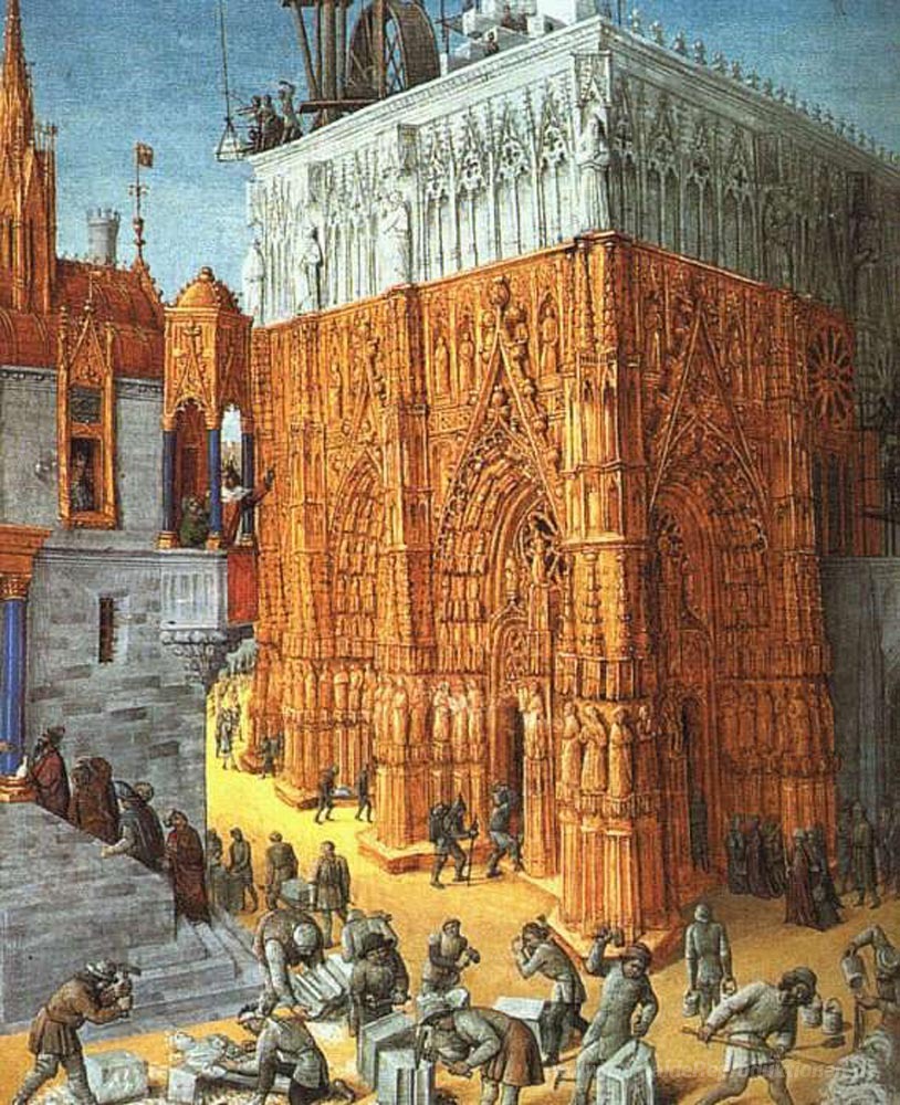 Wir bieten Ihnen eine handgefertigte Reproduktion auf Leinwand des berühmten Kunstwerks 'Bau des Tempels von Jerusalem' von Jean Fouquet, aus dem Reproduktionsmuseum.