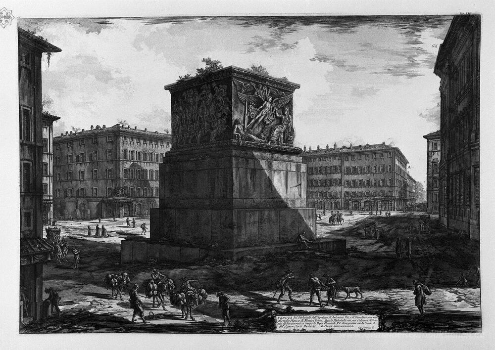 Wir bieten Ihnen eine handgefertigte Reproduktion auf Leinwand des berühmten Kunstwerks 'Blick auf den Sockel der Apotheose des Antoninus Pius und seine ' von Giovanni Battista Piranesi, aus dem Reproduktionsmuseum.