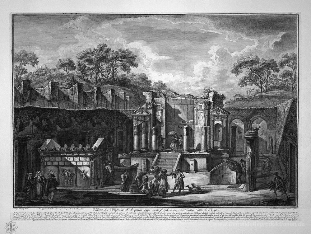 Wir bieten Ihnen eine handgefertigte Reproduktion auf Leinwand des berühmten Kunstwerks 'Blick auf den Tempel der Isis, die heute zu den Überresten der a' von Giovanni Battista Piranesi, aus dem Reproduktionsmuseum.