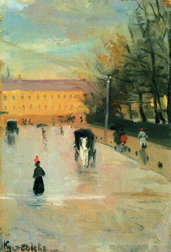 Willkommen in der faszinierenden Welt der Ölgemälde, wo Kunst lebendig wird und Räume verwandelt. Eines der herausragenden Werke in unserer Kollektion ist Blick aus dem Fenster der Akademie der Schönen Künste von dem talentierten Künstler Boris Kustodiev. Dieser Meister des russischen Realismus fängt mit seiner einzigartigen Farbpalette und detailreichen Darstellung die Seele des künstlerischen Schaffens ein und lädt den Betrachter ein, in eine traumhafte Szenerie einzutauchen.