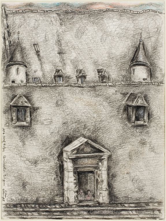 Wir bieten Ihnen eine handgefertigte Reproduktion auf Leinwand des berühmten Kunstwerks 'Blick aus dem Hotelfenster der Roof of Guild Hall, Brüssel, Belg' von Ivan Albright, aus dem Reproduktionsmuseum.