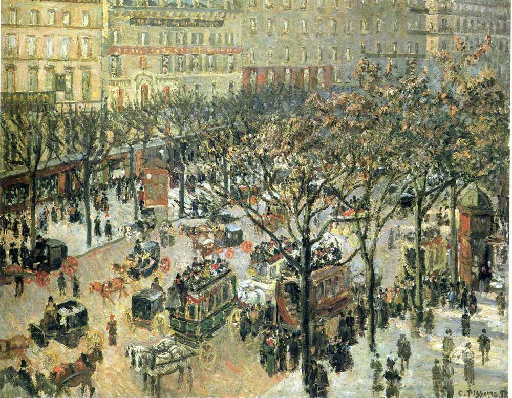 Wir bieten Ihnen eine handgefertigte Reproduktion auf Leinwand des berühmten Kunstwerks 'Boulevard des Italiens Morgen, Sonnenlicht' von Camille Pissarro, aus dem Reproduktionsmuseum.