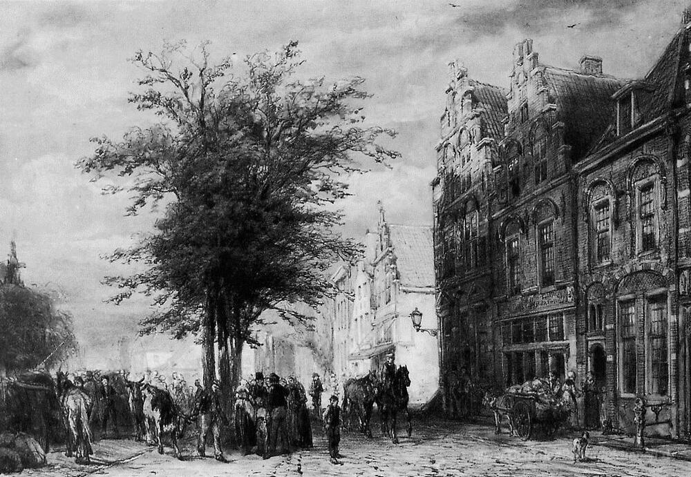Wir bieten Ihnen eine handgefertigte Reproduktion auf Leinwand des berühmten Kunstwerks 'Brielle' von Cornelis Springer, aus dem Reproduktionsmuseum.