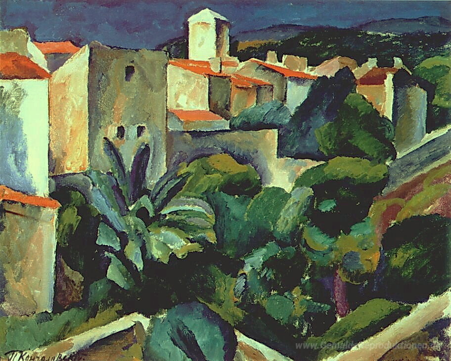 Wir bieten Ihnen eine handgefertigte Reproduktion auf Leinwand des berühmten Kunstwerks 'Cassis' von Pyotr Konchalovsky, aus dem Reproduktionsmuseum.