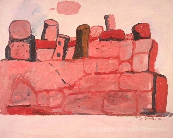 Wir bieten Ihnen eine handgefertigte Reproduktion auf Leinwand des berühmten Kunstwerks 'Cerveteri' von Philip Guston, aus dem Reproduktionsmuseum.