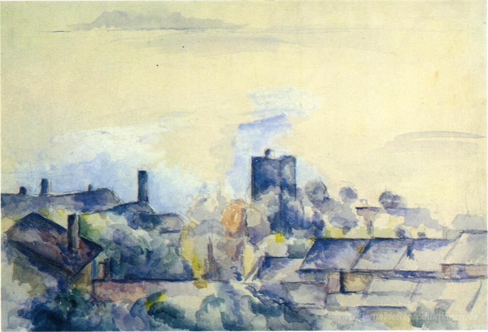 Wir bieten Ihnen eine handgefertigte Reproduktion auf Leinwand des berühmten Kunstwerks 'Dächer in L'Estaque' von Paul Cezanne, aus dem Reproduktionsmuseum.