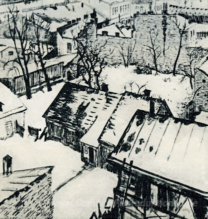 Wir bieten Ihnen eine handgefertigte Reproduktion auf Leinwand des berühmten Kunstwerks 'Dächer' von Mstislav Dobuzhinsky, aus dem Reproduktionsmuseum.