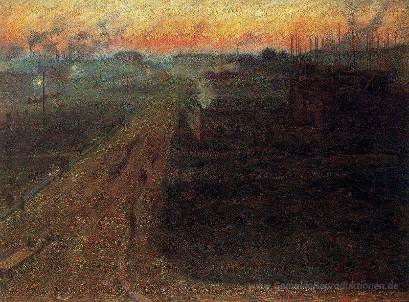 Wir bieten Ihnen eine handgefertigte Reproduktion auf Leinwand des berühmten Kunstwerks 'Dämmerung' von Umberto Boccioni, aus dem Reproduktionsmuseum.