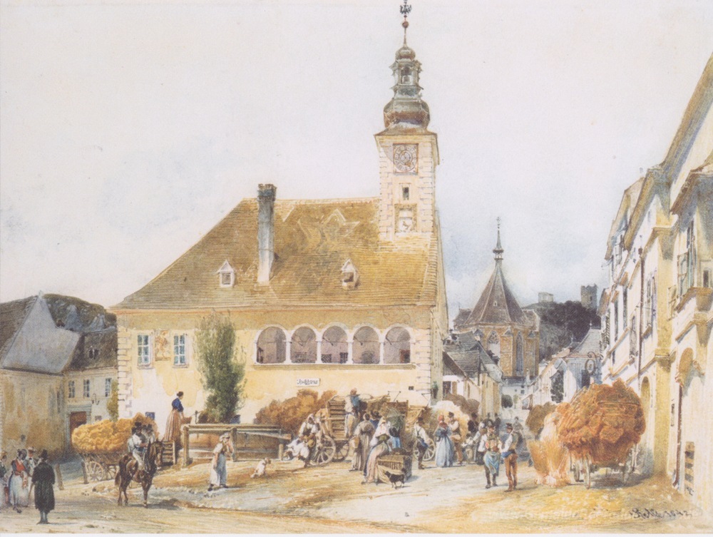 Wir bieten Ihnen eine handgefertigte Reproduktion auf Leinwand des berühmten Kunstwerks 'Das Rathaus in Mödling' von Rudolf von Alt, aus dem Reproduktionsmuseum.