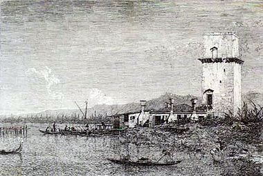 Wir bieten Ihnen eine handgefertigte Reproduktion auf Leinwand des berühmten Kunstwerks 'Das Schleppseil des Malghera' von Canaletto, aus dem Reproduktionsmuseum.