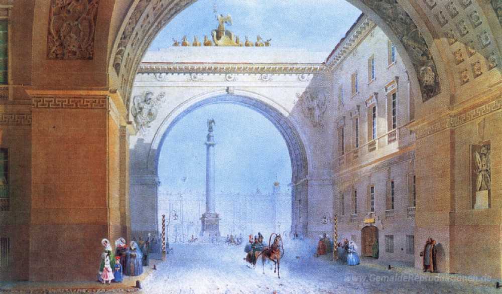 Wir bieten Ihnen eine handgefertigte Reproduktion auf Leinwand des berühmten Kunstwerks 'Der Bogen des Generalheadquarters Building' von Vasily Sadovnikov, aus dem Reproduktionsmuseum.