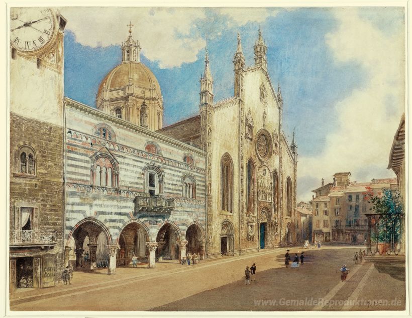 Wir bieten Ihnen eine handgefertigte Reproduktion auf Leinwand des berühmten Kunstwerks 'Der Domplatz in Como' von Rudolf von Alt, aus dem Reproduktionsmuseum.