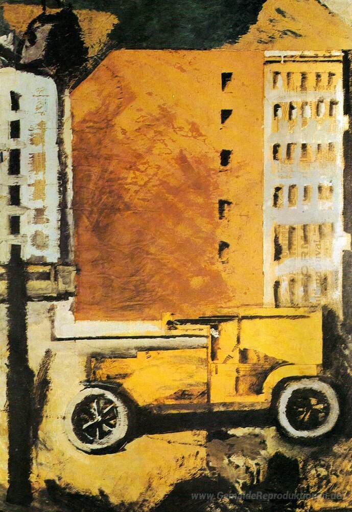 Wir bieten Ihnen eine handgefertigte Reproduktion auf Leinwand des berühmten Kunstwerks 'Der gelbe Lkw' von Mario Sironi, aus dem Reproduktionsmuseum.