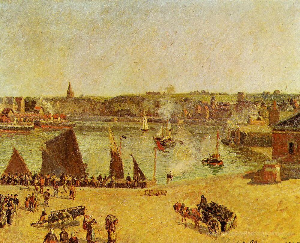 Wir bieten Ihnen eine handgefertigte Reproduktion auf Leinwand des berühmten Kunstwerks 'Der Inner Harbor, Dieppe' von Camille Pissarro, aus dem Reproduktionsmuseum.
