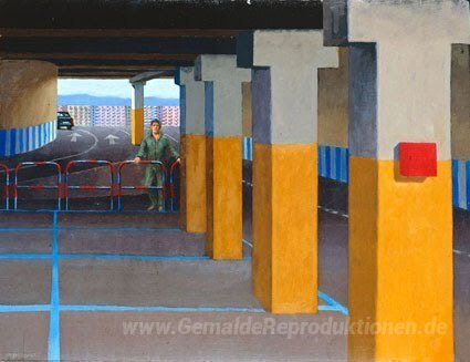 Wir bieten Ihnen eine handgefertigte Reproduktion auf Leinwand des berühmten Kunstwerks 'Der Supermarkt Park II' von Jeffrey Smart, aus dem Reproduktionsmuseum.