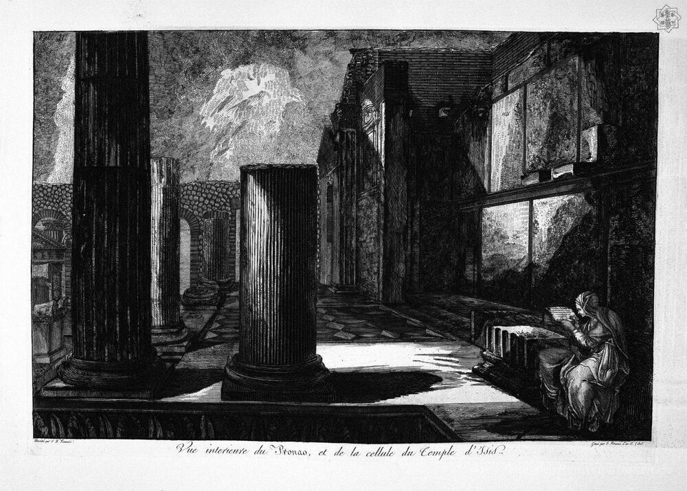 Wir bieten Ihnen eine handgefertigte Reproduktion auf Leinwand des berühmten Kunstwerks 'Der Tempel der Isis de Gesicht, mit den zwei Flügeln seiner peri' von Giovanni Battista Piranesi, aus dem Reproduktionsmuseum.
