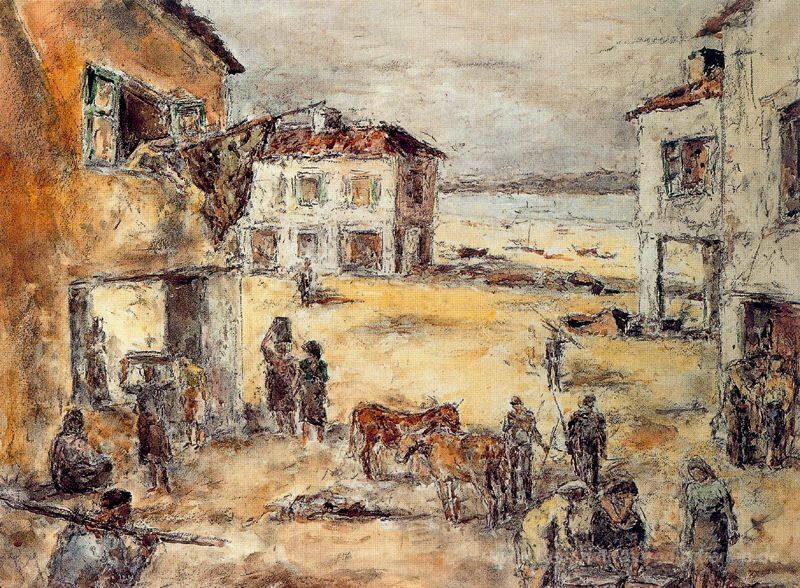 Wir bieten Ihnen eine handgefertigte Reproduktion auf Leinwand des berühmten Kunstwerks 'Die Berbes' von Arturo Souto, aus dem Reproduktionsmuseum.