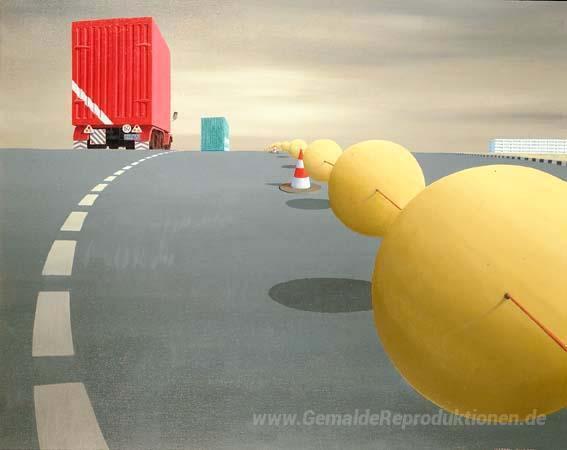 Wir bieten Ihnen eine handgefertigte Reproduktion auf Leinwand des berühmten Kunstwerks 'Die Guiding Spheres' von Jeffrey Smart, aus dem Reproduktionsmuseum.