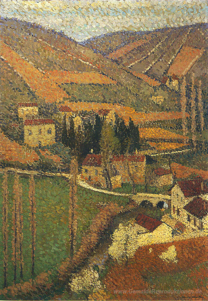 Wir bieten Ihnen eine handgefertigte Reproduktion auf Leinwand des berühmten Kunstwerks 'Die Kampagne' von Henri Martin, aus dem Reproduktionsmuseum.