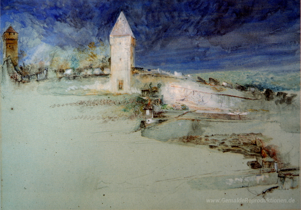 Wir bieten Ihnen eine handgefertigte Reproduktion auf Leinwand des berühmten Kunstwerks 'Die Mauern von Luzern' von John Ruskin, aus dem Reproduktionsmuseum.