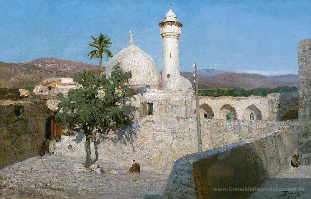 Wir bieten Ihnen eine handgefertigte Reproduktion auf Leinwand des berühmten Kunstwerks 'Die Moschee in Jenin' von Vasily Polenov, aus dem Reproduktionsmuseum.