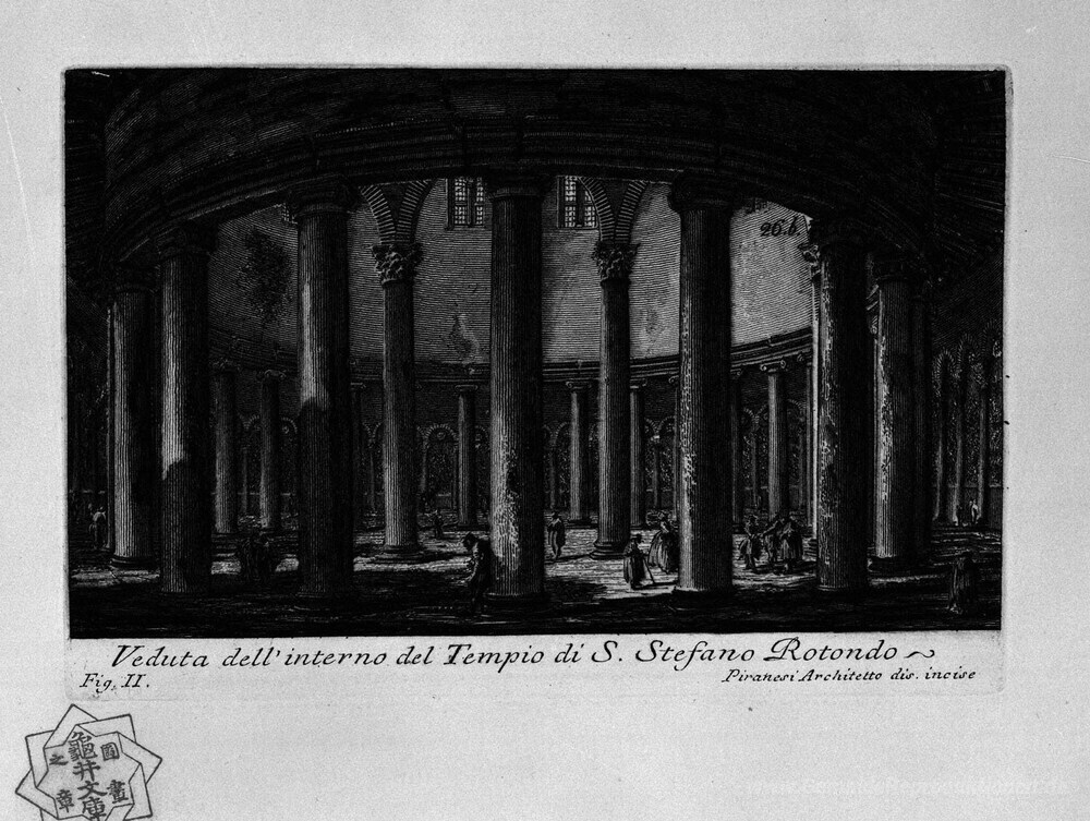 Wir bieten Ihnen eine handgefertigte Reproduktion auf Leinwand des berühmten Kunstwerks 'Die römische Altertümer, t. 1, Tafel XXV. Santo Stefano Rotondo.' von Giovanni Battista Piranesi, aus dem Reproduktionsmuseum.