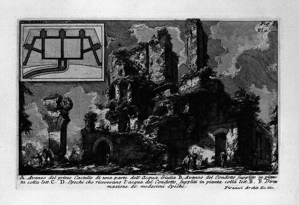 Wir bieten Ihnen eine handgefertigte Reproduktion auf Leinwand des berühmten Kunstwerks 'Die römische Altertümer, t. 1, Tafel XXVI. Aqua Julia.' von Giovanni Battista Piranesi, aus dem Reproduktionsmuseum.