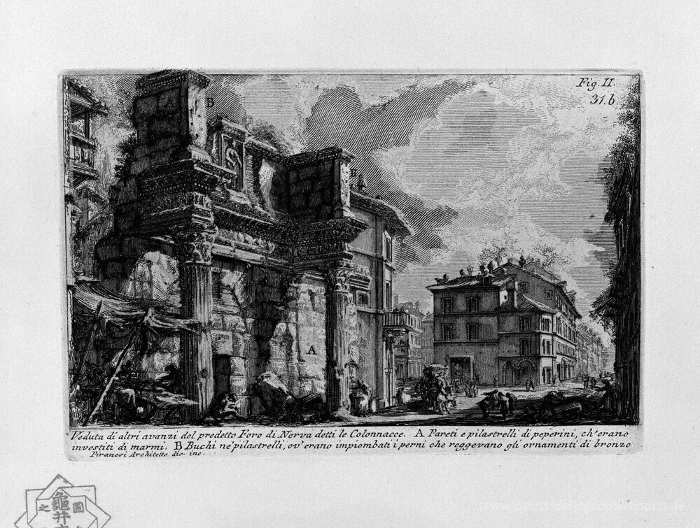 Wir bieten Ihnen eine handgefertigte Reproduktion auf Leinwand des berühmten Kunstwerks 'Die römische Altertümer, t. 1, Tafel XXX. Forum Nervae.' von Giovanni Battista Piranesi, aus dem Reproduktionsmuseum.