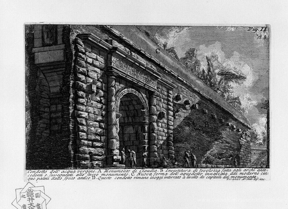 Wir bieten Ihnen eine handgefertigte Reproduktion auf Leinwand des berühmten Kunstwerks 'Die römische Altertümer, t. 1, Teller XII. Aqua Alsietina.' von Giovanni Battista Piranesi, aus dem Reproduktionsmuseum.