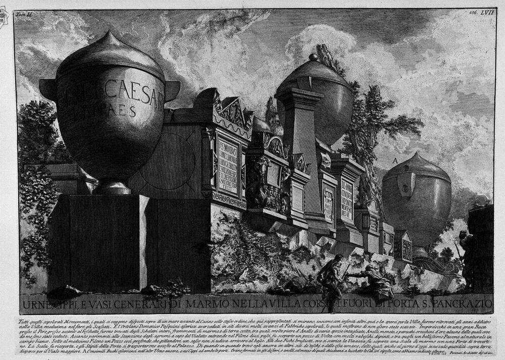 Wir bieten Ihnen eine handgefertigte Reproduktion auf Leinwand des berühmten Kunstwerks 'Die römische Altertümer, t. 2, Platten LVII. Urnen, Gedenkstätte' von Giovanni Battista Piranesi, aus dem Reproduktionsmuseum.
